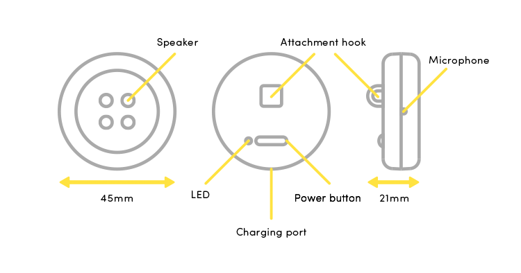 | Outer dimensions | 45 mm diameter × 21mm depth (including attachment hook) |